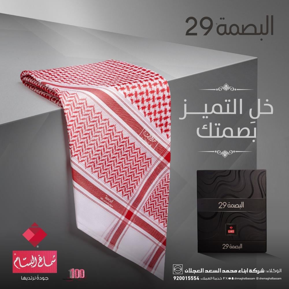 جدول لتوضيح مقاس الشماغ المناسب لك حسب الطول: